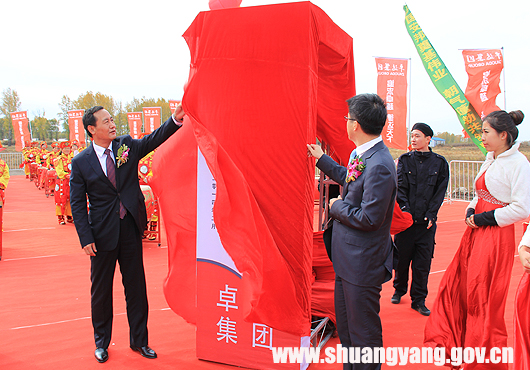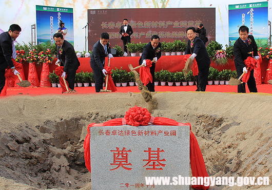 区委书记王明德与卓达集团东北大区总经理张若石共同为卓达集团国家住宅产业化基地揭牌。参加揭牌仪式的部分领导还为长春卓达绿色新材料产业园开工奠基。